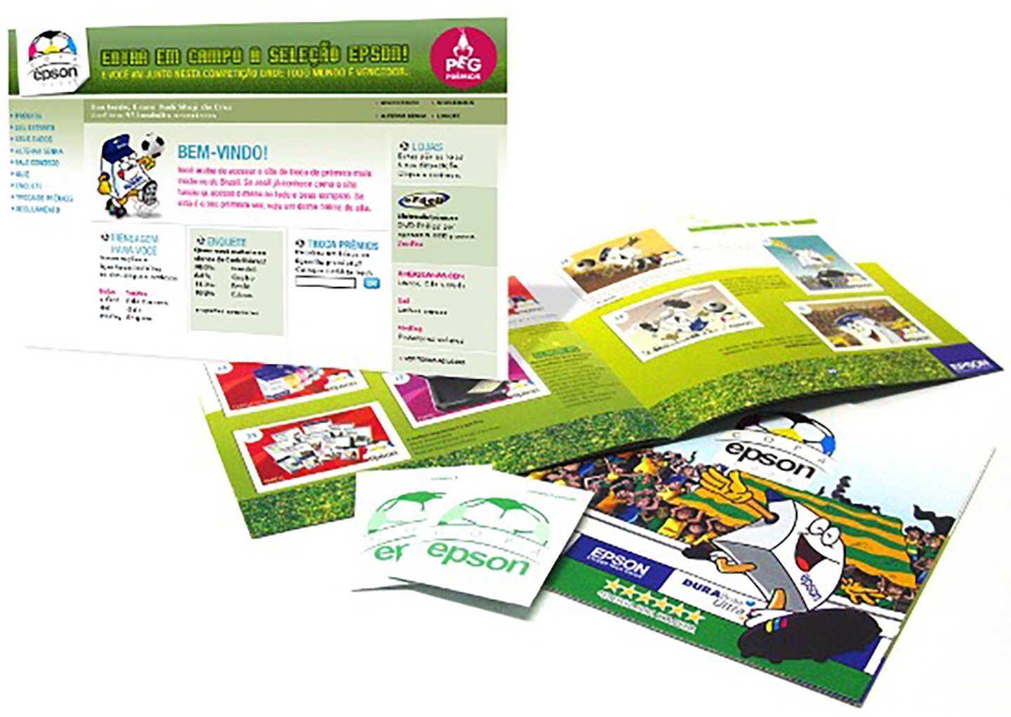The first campaign was for Epson, in the printer segment. The goal was to encourage salespeople from large distributors to sell more printers at a time when other companies were offering high-value prizes (trips to the World Cup in Germany, 42-inch plasma TVs, etc.). Epson didn't have the budget to compete with these prizes, but that wasn't a problem. We created a World Cup-themed campaign using sticker albums featuring the teams and printers. This was done without conflicting copyrights, but rather took advantage of the context, with the album acting as the control and promotional material for the mechanics. The campaign was customized for each reseller; that is, the prize calculation was proportional to each team's sales goals, ensuring sustainability. The mechanism was simple: for each sales goal reached, the participating salesperson received a pack of three stickers, one of which was awarded a prize (there was an algorithm that was to be displayed on the website). Because the goal was individualized, everyone was able to complete the album, increasing the campaign's reach. Once participants received their pack, they picked up the winning sticker and went to the campaign website, where they had registered, to find out their prize. The system randomly selected the prize from the stock already allocated for that code. The system's control was such that some participants tried to use the same code more than once (unsuccessfully, as the system only awarded one prize per code), and we were able to determine how many times this had been done. The client could track each team's performance directly through the online dashboard, which displayed the participants, their scores, prizes won, and their progress toward the goal.