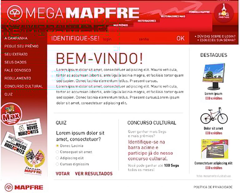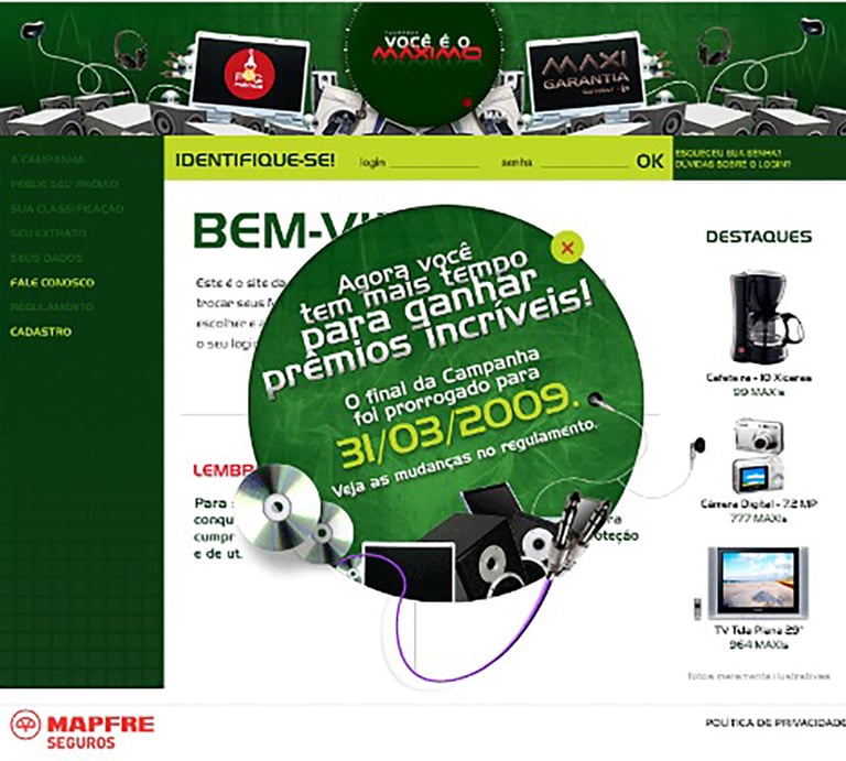Since these options were new in Brazil, it was necessary to create intuitive and easy-to-understand navigation. The matrix tab model solved the problem and became a market benchmark at the time. All this was developed in record time and without compromising sales.